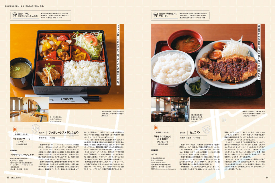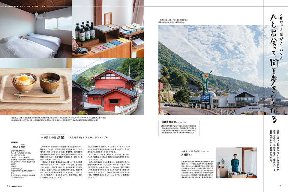今月号の特集では、福井駅前にある「コードヤード・バイ・マリオット福井」の日本料理レストラン『福い』の中村料理長や、20代で注目を集める坂井市三国町『LULL』の高橋シェフが登場。そのほか、地元の魅力発信を手掛ける一棟貸しの宿『点景』や、気ままなドライブの目的地におススメしたい国道沿いの名店を紹介しています。あらためて、福井県内の魅力的なエリアやエピソードとともにこの秋のお出掛け情報をお届けします。